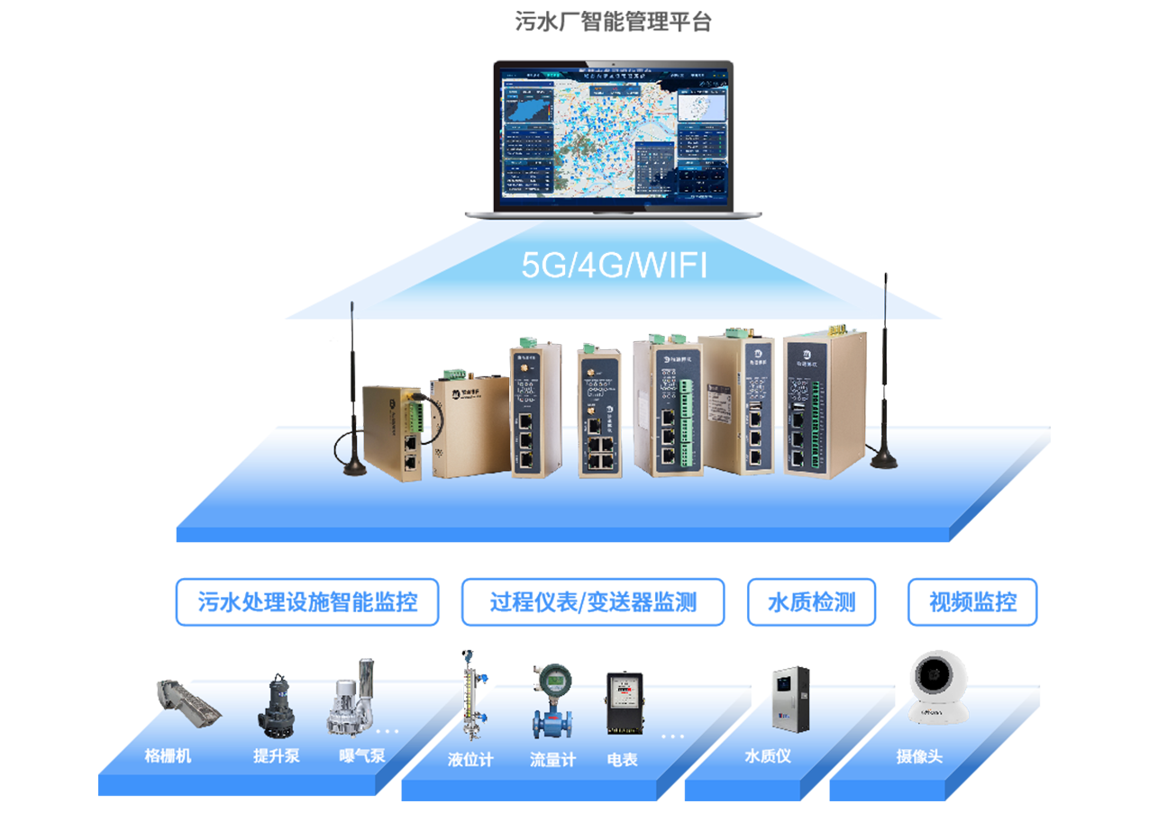 借助物通博聯(lián)的工業(yè)智能網(wǎng)關(guān),實時采集污水處理廠內(nèi)各類設(shè)備(如水泵、風(fēng)機、格柵機等)的運行數(shù)據(jù),包括運行狀態(tài)、電流、電壓、溫度等,以及污水的流量、水質(zhì)指標(biāo)(如化學(xué)需氧量、氨氮、懸浮物等)。將采集到的數(shù)據(jù)傳輸至污水處理遠程監(jiān)控平臺,進行數(shù)據(jù)存儲、分析和展示。平臺可對設(shè)備運行狀態(tài)進行實時監(jiān)測,當(dāng)設(shè)備出現(xiàn)異常或水質(zhì)指標(biāo)接近超標(biāo)時及時發(fā)出預(yù)警,并提供故障診斷和處理建議。同時支持遠程運維操作,如設(shè)備參數(shù)調(diào)整、啟停控制等,實現(xiàn)對污水處理廠的高效管理。