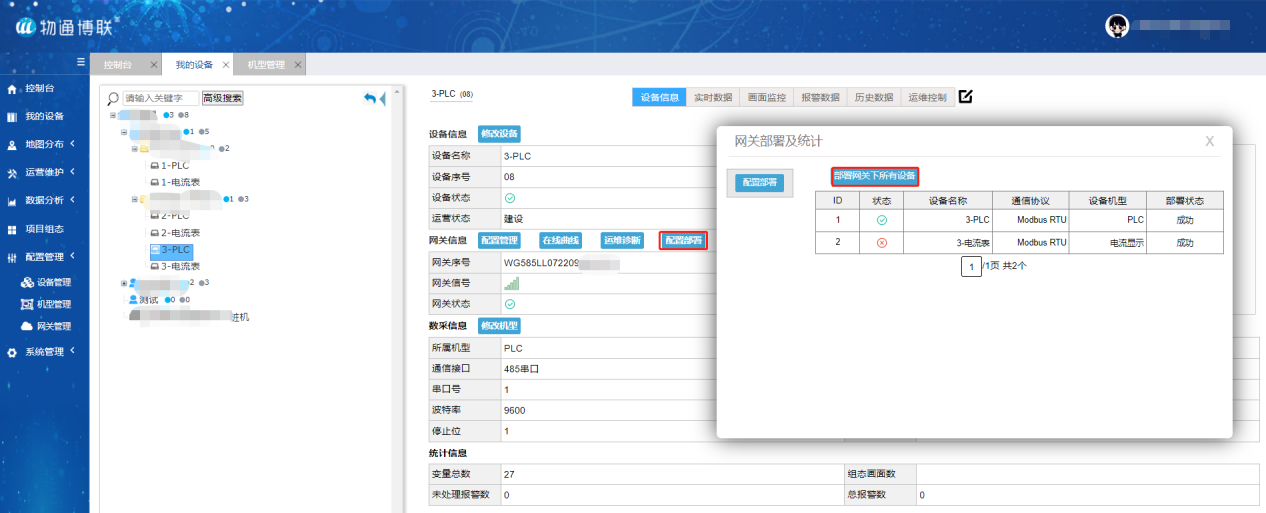 下載中心 視頻中心 常見問題 售后服務 工業網關 設備快線 數據云平臺 聯網設備 問答百科 網關需要將數據上報到物通博聯云平臺需要哪些配置? 時間:2022-10-26 09:39:53 點擊:4984 關鍵詞:工業網關,云平臺,數據上報,網關配置 問題:網關需要將數據上報到物通博聯云平臺需要哪些配置? 回答: (1)確認網關處于聯網狀態 (2)網關云服務中心里添加物通博聯云平臺的中心 (3)通過物通博聯申請的賬號登陸云平臺(iot.wtblnet.com) (4)在我的設備目錄樹上添加設備 (5)填寫設備詳細參數以及添加網關序列號及所屬機型 (6)在添加好的所屬機型里面添加咱們需要上傳的數據 (7)保存之后點擊我的設備—目錄樹下建好的設備—配置部署 (8)最后建好的設備界面—實時數據查看 上一篇:網關采集modbus協議設備時,寄存器類型和地址如何選擇? 下一篇: 工業智能網關串口RS485和RS232的接線方式?